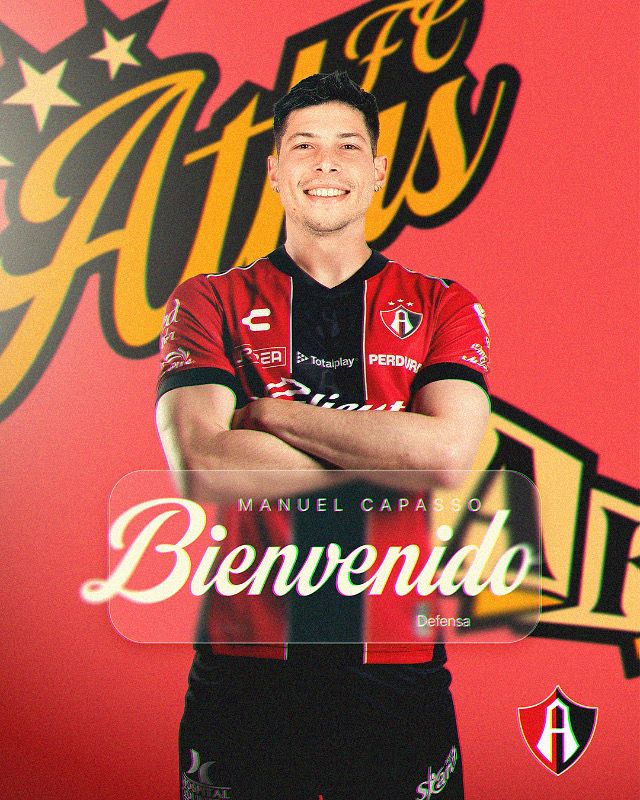 Guadalajara, Jalisco.- Los rojinegros del Atlas anunciaron de forma oficial al defensa central argentino Manuel Capasso, quien llega como primer refuerzo de la furia procedente del Olimpia de Paraguay a pesar de tener aún seis meses de contrato con el equipo.