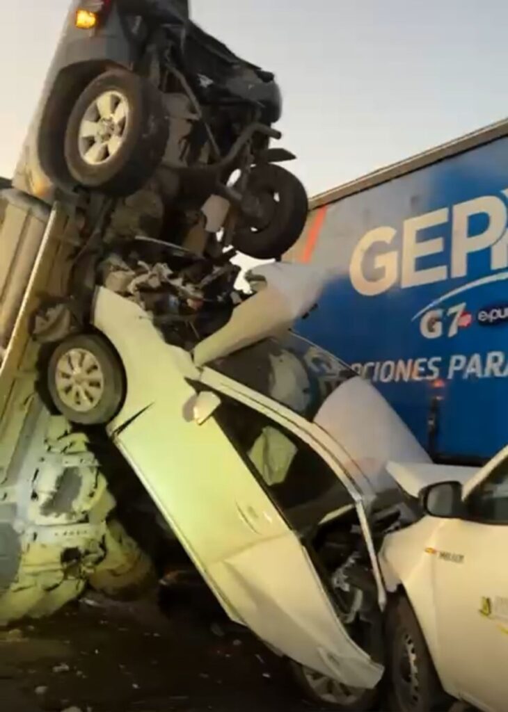 Zapotiltic, Jalisco.- El kilómetro 96 de la autopista Guadalajara-Colima fue el epicentro de un aparatoso choque múltiple entre seis vehículos. Unidades de emergencia de Zapotiltic acudieron al lugar percatándose que se trataba de tres trailers, dos camionetas, un vehículo particular. A pesar de que los vehículos quedaron de manera vertical no se registraron Personas lesionadas. Autoridades llevan a cabo trabajos de prevención para evitar otro accidente.