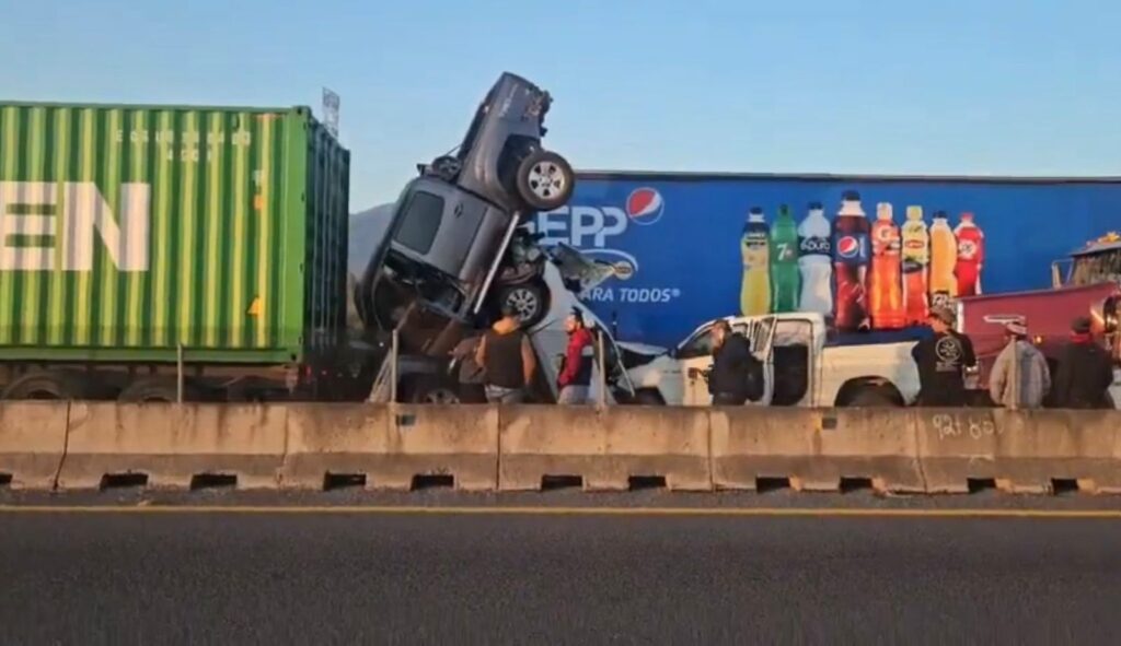 Zapotiltic, Jalisco.- El kilómetro 96 de la autopista Guadalajara-Colima fue el epicentro de un aparatoso choque múltiple entre seis vehículos. Unidades de emergencia de Zapotiltic acudieron al lugar percatándose que se trataba de tres trailers, dos camionetas, un vehículo particular. A pesar de que los vehículos quedaron de manera vertical no se registraron Personas lesionadas. Autoridades llevan a cabo trabajos de prevención para evitar otro accidente.