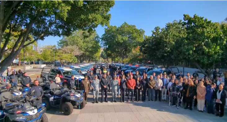 Guadalajara, Jalisco.- Con una Inversión de 62 millones 875 mil 685.76 pesos el gobierno de Guadalajara entregó 26 patrullas tipo pick up con doble cabina modelo 25 Ford F150XL y 1 Dodge Ram 2500, 12 bicicletas eléctricas, 8 cuatrimotos, 2 drones térmicos, 350 radios y 350 pilas para radios para fortalecer las herramientas a los oficiales tapatíos que patrullan la capital jalisciense.