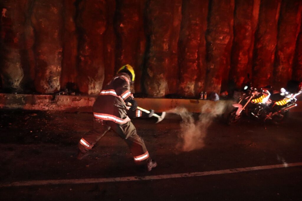 Guadalajara, Jalisco.-Un vehículo se Incendió por completo dentro de túnel, el fuego se propagó muy rápido y tuvo que permanecer cerrado a la circulación en ambos sentidos mientras se hacían las maniobras.