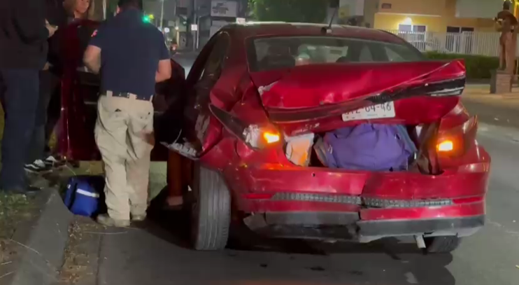 Tonalá, Jalisco.- El fuerte accidente se registró sobre la avenida Patria al cruce con Santa Rosalía. Elementos de bomberos del municipio de Tonalá se encargaron de controlar las llamas y evitar que se propagara. Ambos conductores resultaron con lesiones leves.