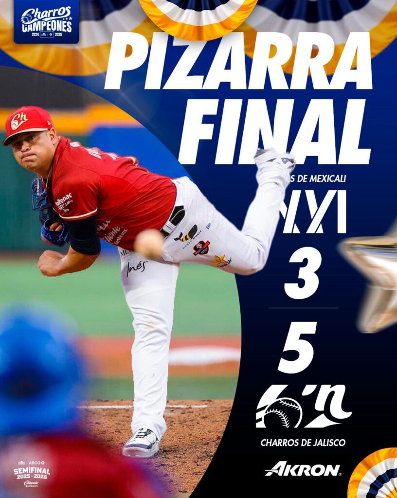 Zapopan, Jalisco.- Los Charros de Jalisco derrotaron por pizarra de cinco carreras a tres a los caballeros águila de Mexicali en un gran primer juego de las semifinales de la Liga Mexicana del Pacífico disputado en el parque de pelota de Zapopan; Este lunes continuará la serie entre la novena jalisciense y el conjunto cachanilla en el estadio panamericano.