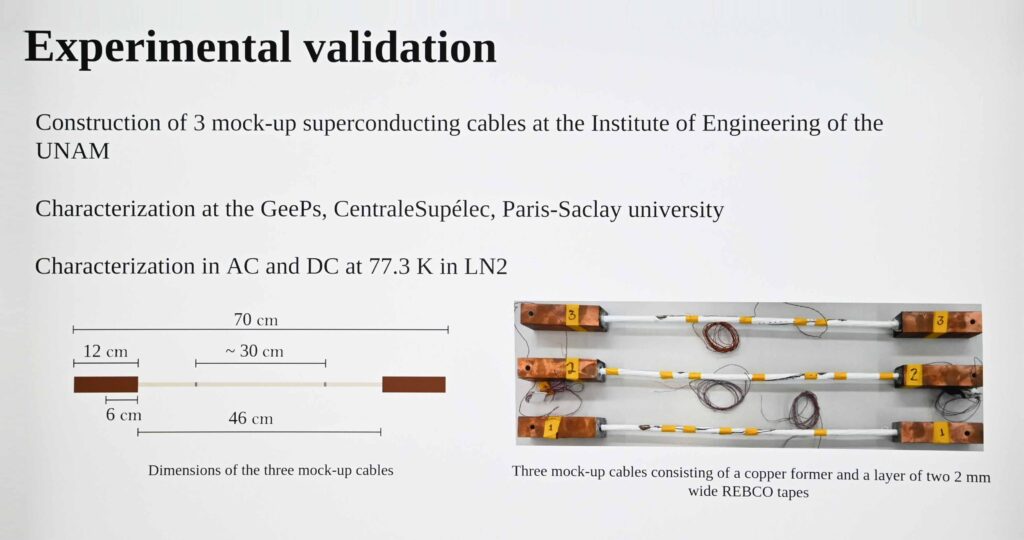 Esta infraestructura se encuentra en otros laboratorios franceses. Frederic Trillaud llevó a cabo una estancia sabática en el GeePs de la Escuela de Ingeniería Centralesupélec de la Universidad de Paris-Saclay. Allí se caracterizaron cuatro maquetas de cable superconductor hechos en México, con el apoyo de Loïc Quéval en corriente directa y alterna.