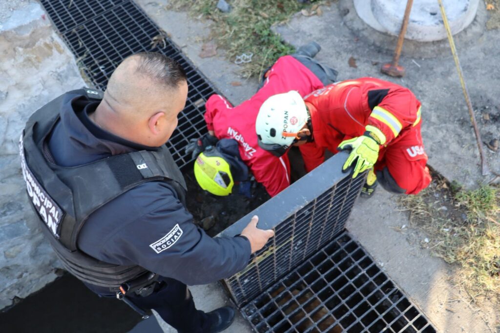 Zapopan, Jalisco.- José acompañado de su hija transitaban por Periférico y Volcán Quinceo, en la colonia Paraísos del Collí. Cuando la menor se percató que un perro se encontraba atrapado al interior de una alcantarilla, el papá trató de buscarlo, sin tener éxito y fue hasta que apareció otro cachorro que lo guió con su amigo