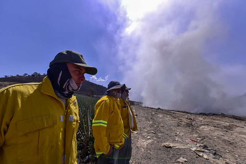 En el sitio había un incendio activo importante que emitía humo contaminante a la atmósfera, el cual era atendido por elementos de la Unidad Estatal de Protección Civil y Bomberos de Jalisco.