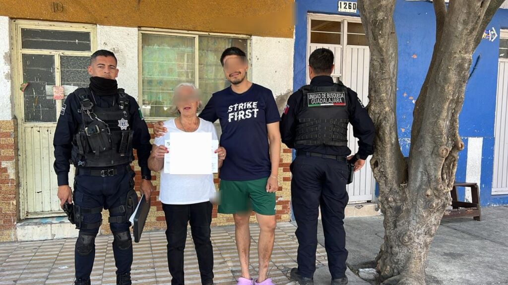 Guadalajara, Jalisco.- Un reporte al número de emergencias señalaba sobre una adulta mayor que aparentemente estaba desorientada en los cruces de Calzada Juan Pablo II y Circunvalación, oficiales tapatíos se trasladaron al punto señalado en la colonia Postes Cuates. A su arribo encontraron a la mujer que relató salir de su casa y al no ver a su hijo camino, hasta ya no poder regresar. Los uniformados comenzaron con las investigaciones logrando reintegrarla con su hijo.