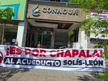 Guadalajara, Jalisco.- Cientos de habitantes de la Ribera de Chapala se manifestaron este lunes a las afueras de las oficinas de la Conagua sobre avenida federalismo para exigir al gobierno federal que detenga el proyecto del acueducto Solís León un proyecto con el que pretenden abastecer de agua a habitantes de Guanajuato habló, el Presidente de la cooperativa de lancheros de Chapala, Gilberto Rivera.