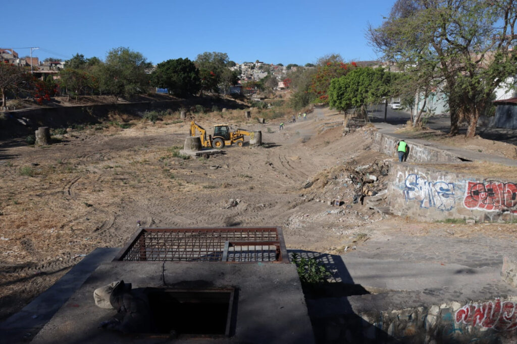 Guadalajara, Jalisco.- Con miras a la temporada de lluvias, la Dirección de Mejoramiento Urbano del Gobierno de Guadalajara ha intervenido el 65 por ciento de los canales y vasos reguladores que hay en el Municipio para retirar residuos que bloquean el cauce.