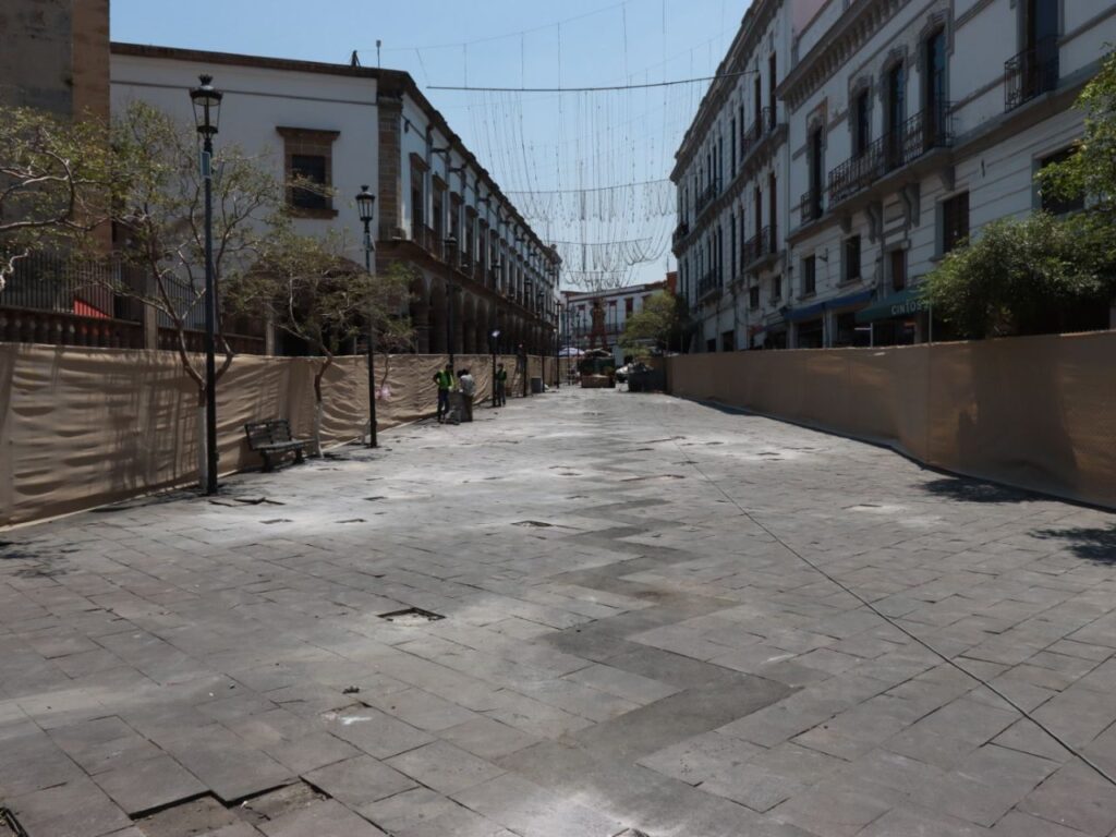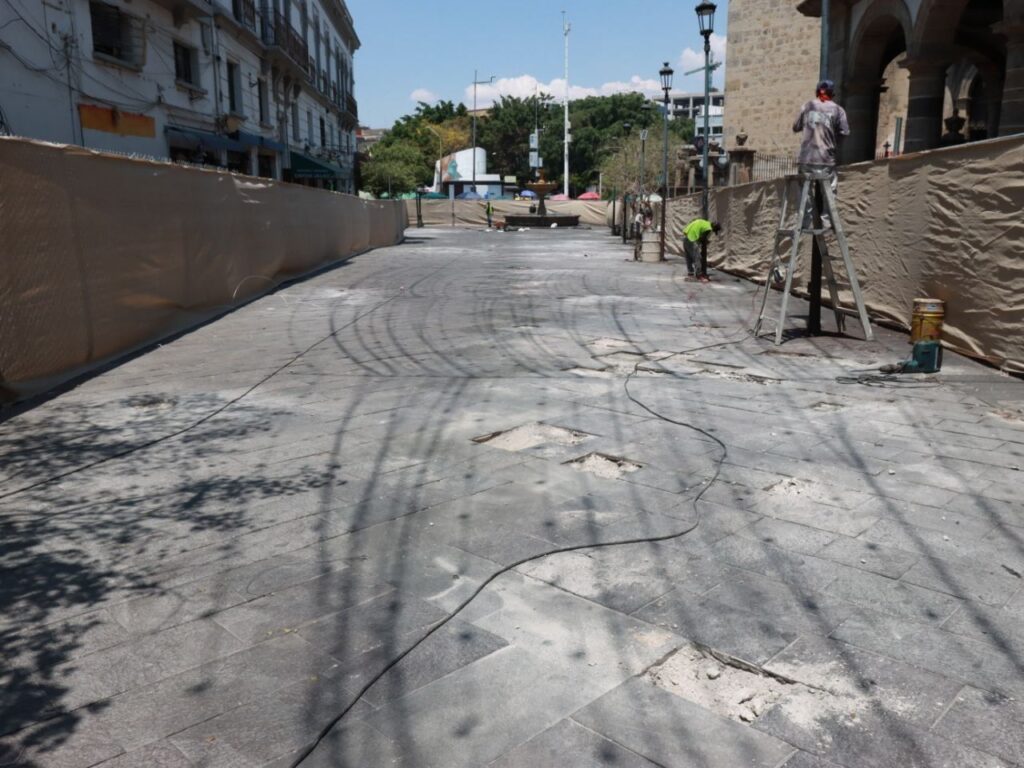 Guadalajara, Jalisco.- A partir de este lunes el ayuntamiento de Guadalajara inicio con los trabajos de rehabilitación y mantenimiento en la plaza de los mariachis ubicadas sobre la calzada independencia y avenida Juárez en donde se pretende conservar en buen estado este espacio emblemático de la ciudad, ahí llevarán a cabo la sustitución y la colocación de piezas faltantes rehabilitación de luminarias limpieza de estructuras y sustitución de registros para garantizar que todo funcione correctamente en los portales se hará rehabilitación y fijación de piezas de cantera limpieza y se dará atención a los que presenten desgaste también pondrán a funcionar la fuente que se encuentra en la zona.