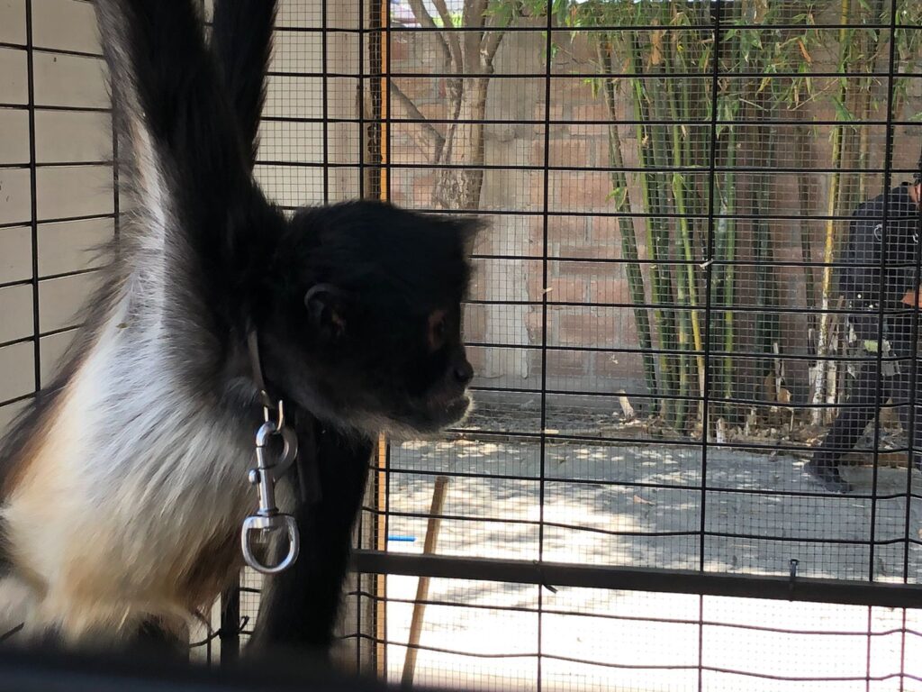 Jalostotitlán, Jalisco.- Elementos de la Policía de Jalisco aseguraron un ejemplar de fauna silvestre, aparentemente mono araña, que se encontraba en cautiverio dentro de un local de venta de bebidas en Jalostotitlán.
