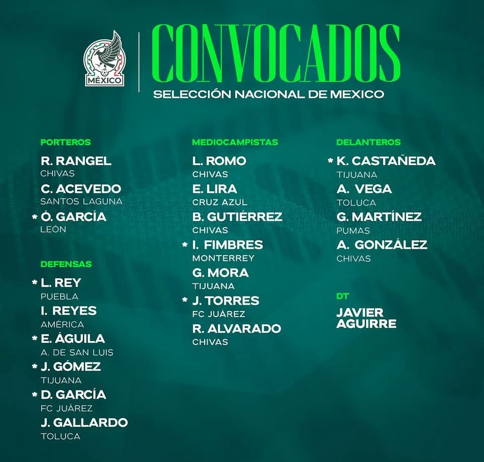 Cabe recordar que la lista se conforma solamente por jugadores que militan en la Liga Mx, y entre ellos se encuentran jugadores que funcionarán como “sparring” para completar el cuadro mientras culmina la actividad de los futbolistas que juegan en Europa.